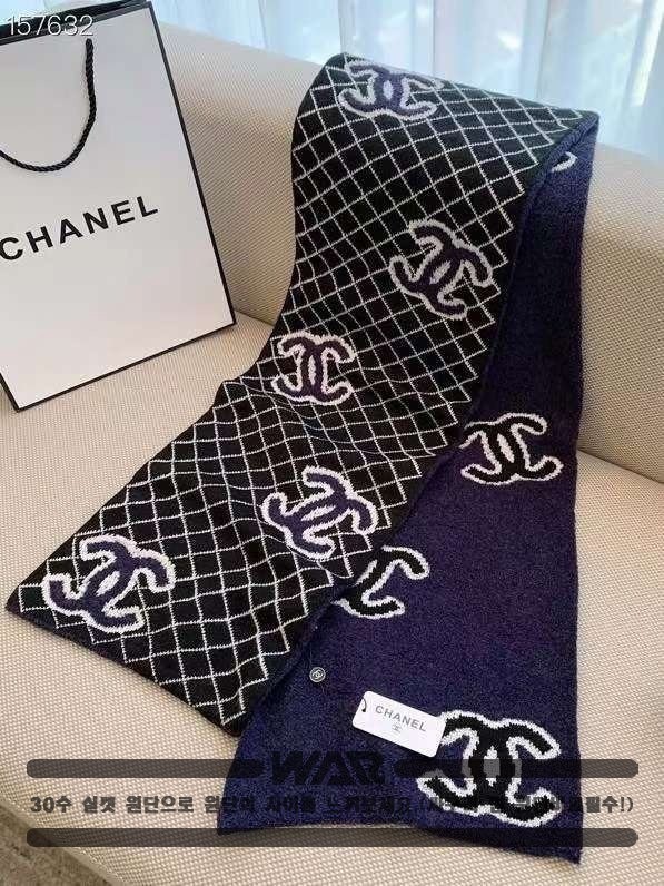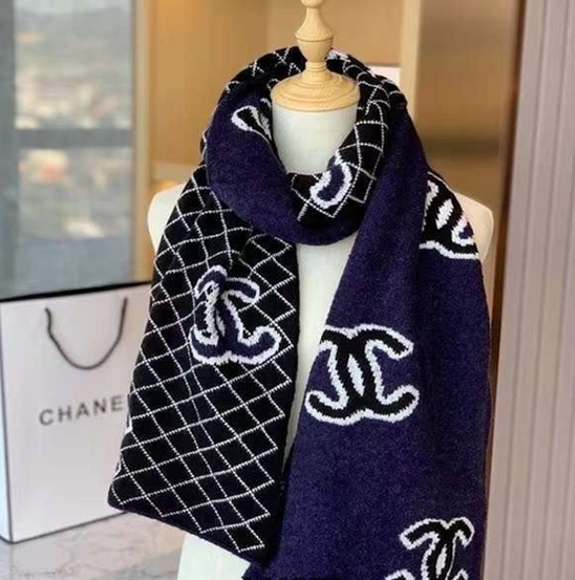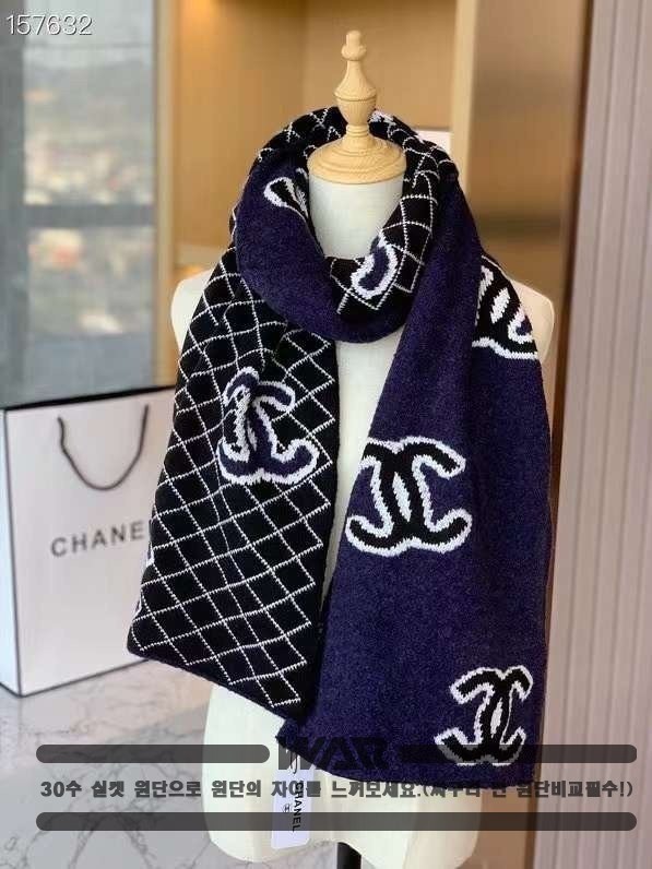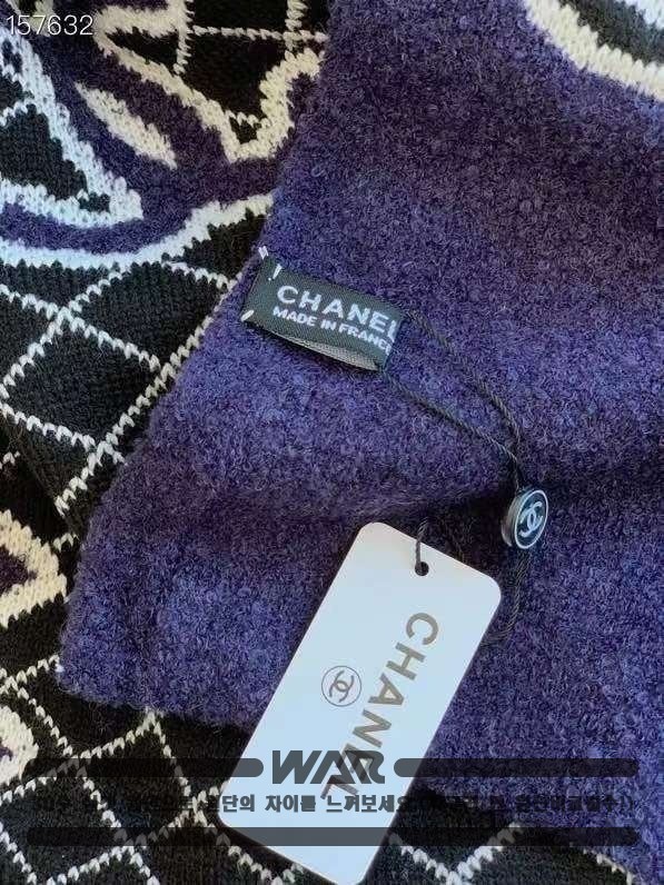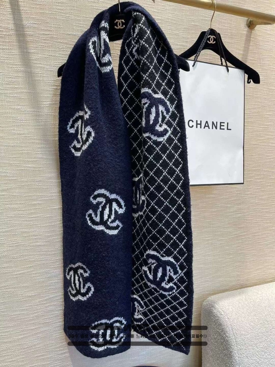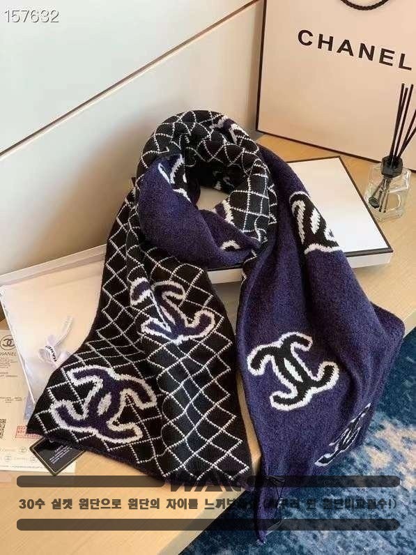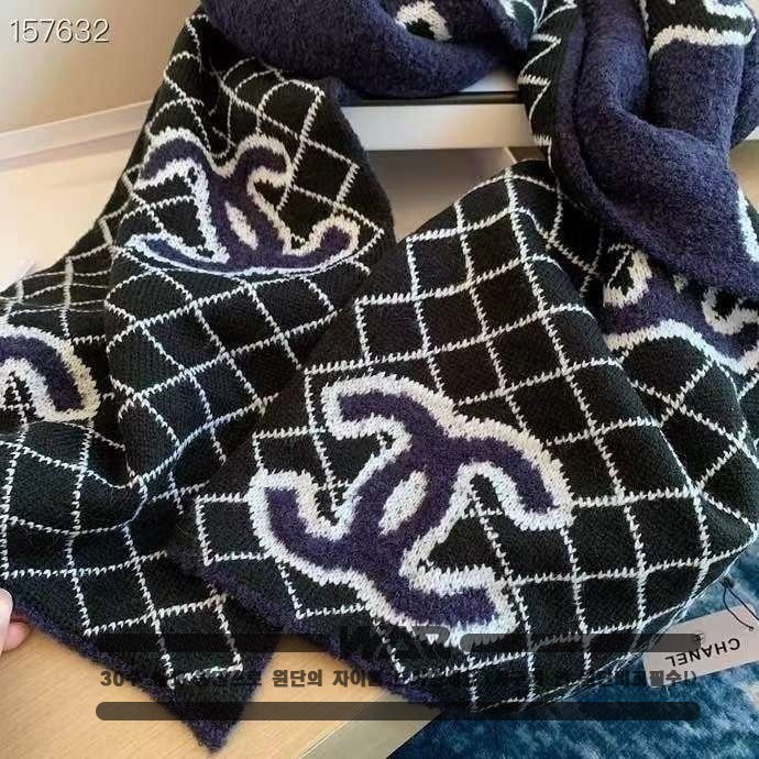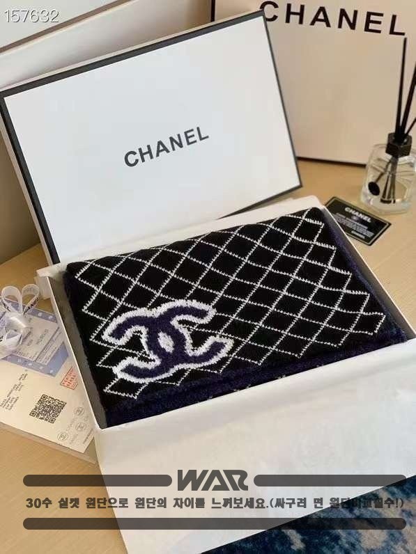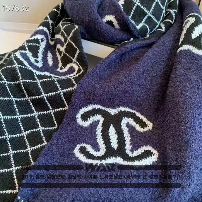 [CHANEL]사선 패턴 포인트 로고 네이비 머플러(제니착용)