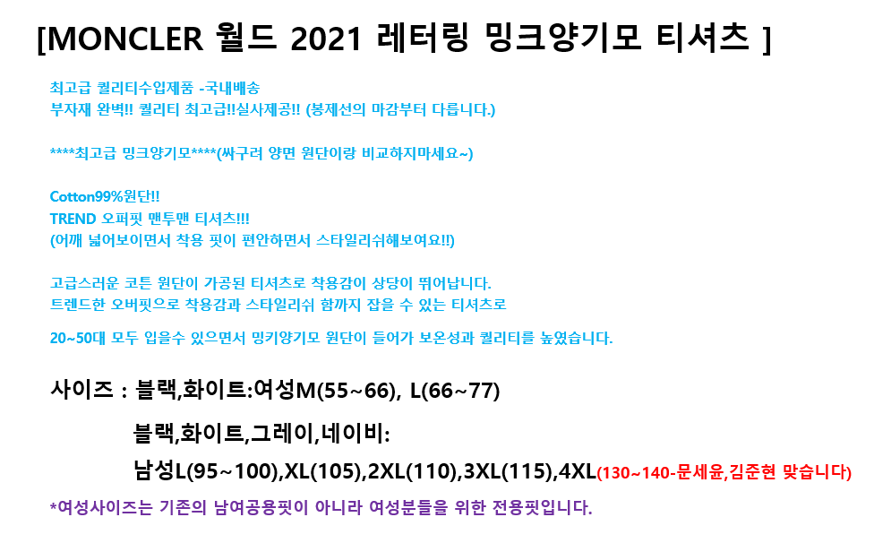 MONCLER 월드 2021 레터링 밍크양기모 티셔츠/빅사이즈까지