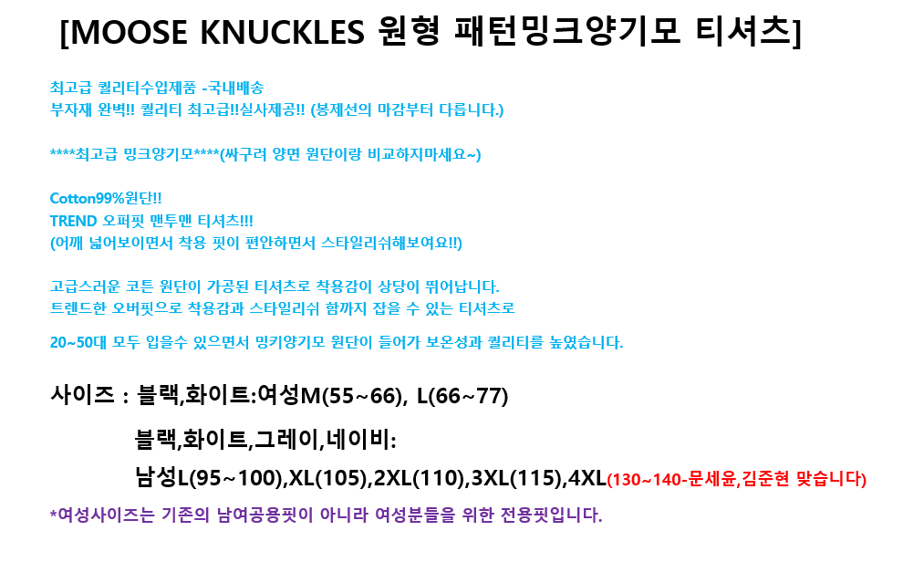 MOOSE KNUCKLES 원형 패턴밍크양기모 티셔츠/빅사이즈까지
